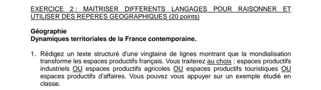 Un espace productif est agricole, industriel ou tertiaire, produit de la richesse là ou il est implanté en créant des activités qui genèrent des emplois et en profitant d’un certain nombre d’aménagements. Ainsi, quel est le fonctionnement et les dynamiques d’un espace productif à l’échelle locale et nationale ?. Une première partie sera consacrée à l’étude d’un espace productif locale tandis qu’une seconde partie traitera de ce même espace productif à l’échelle nationale.